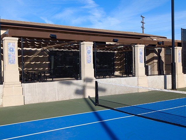 “Belonging” Is an installation for Fremont Park in Glendale, Los Angeles, California. The project features tiled artworks on 22 columns, integrated throughout the park. The artworks were placed on the front and back of each column. A total of 1688 glazed porcelain tiles were created for the installation.